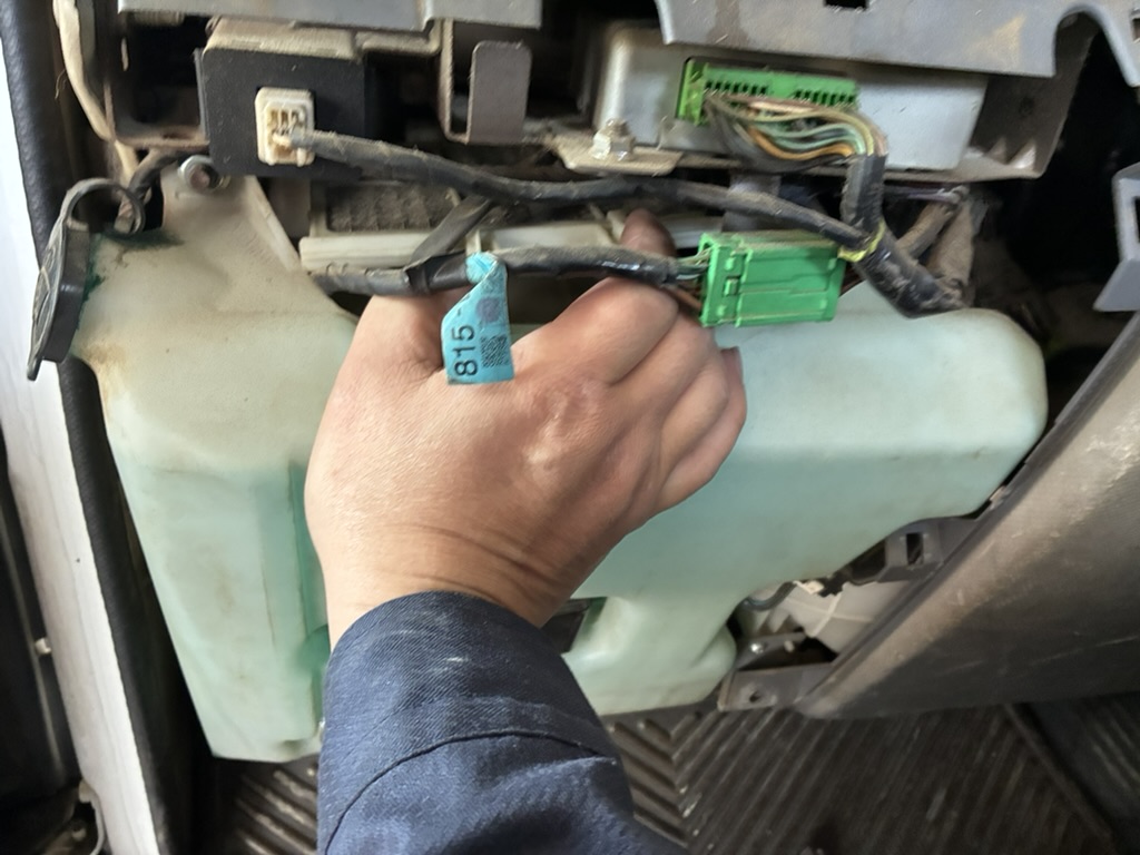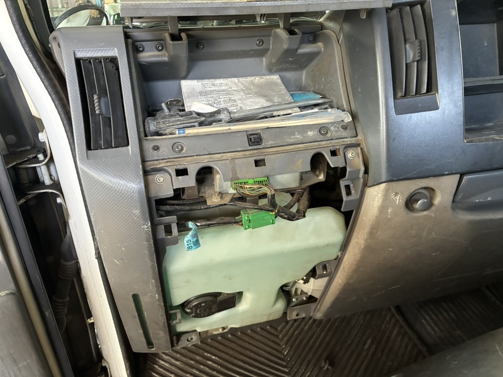 助手席側のグローボックスの下のパネルを外していきます。