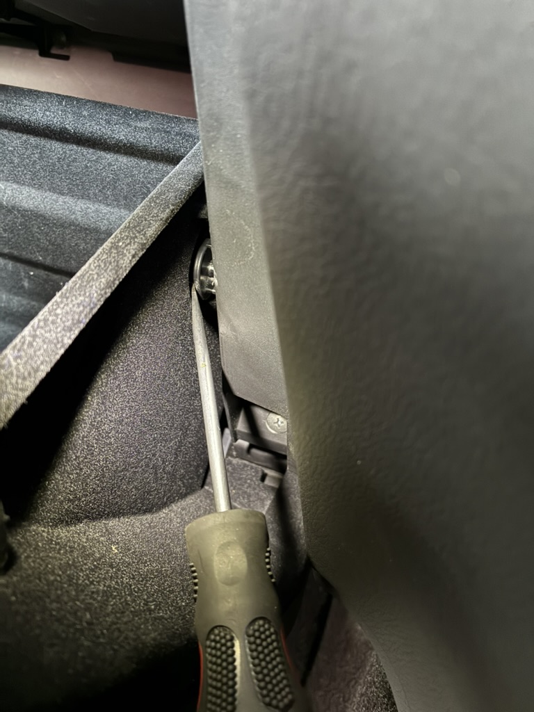 グローボックス右側の隙間から見えるここのワイヤーを外します