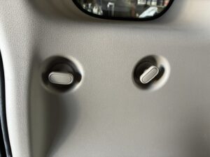 ボルボマークの付いた側がスライドして外れます。 外れたら中にあるレバーをまたスライドします。