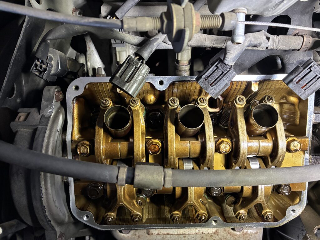 タペットカバーを外した所ですがオイル交換をしっかりとして頂いていたお車ですので