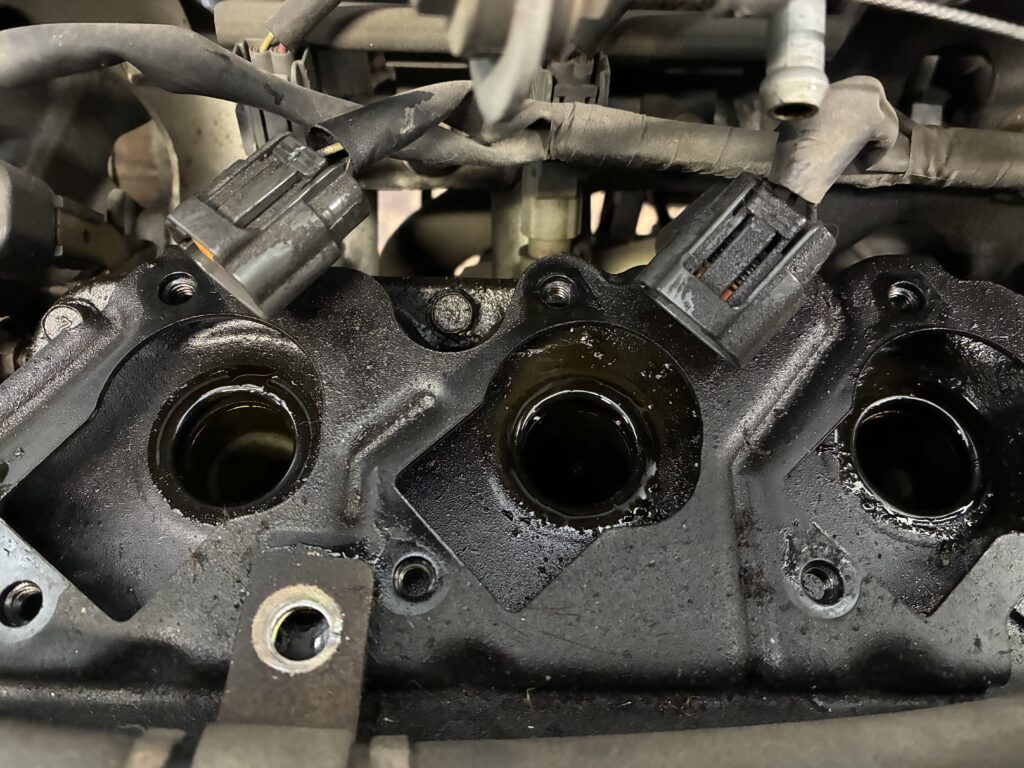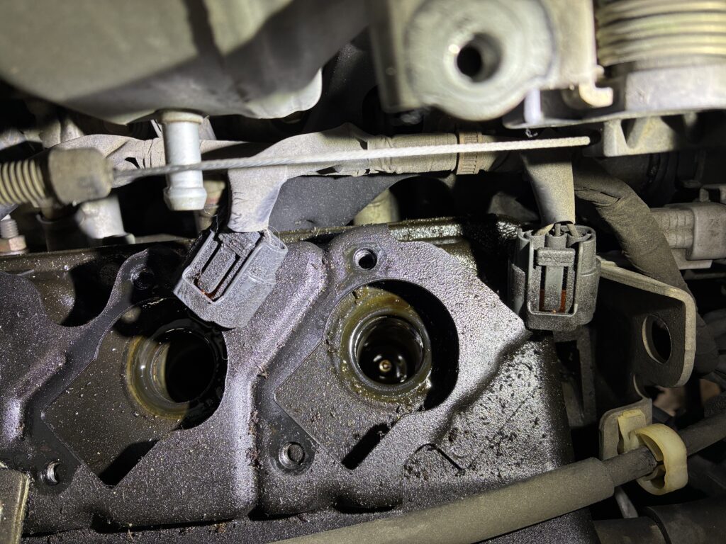 イグニッションコイルを外してみた所、どうやらプラグホールシールからオイル漏れしているみたいですね。